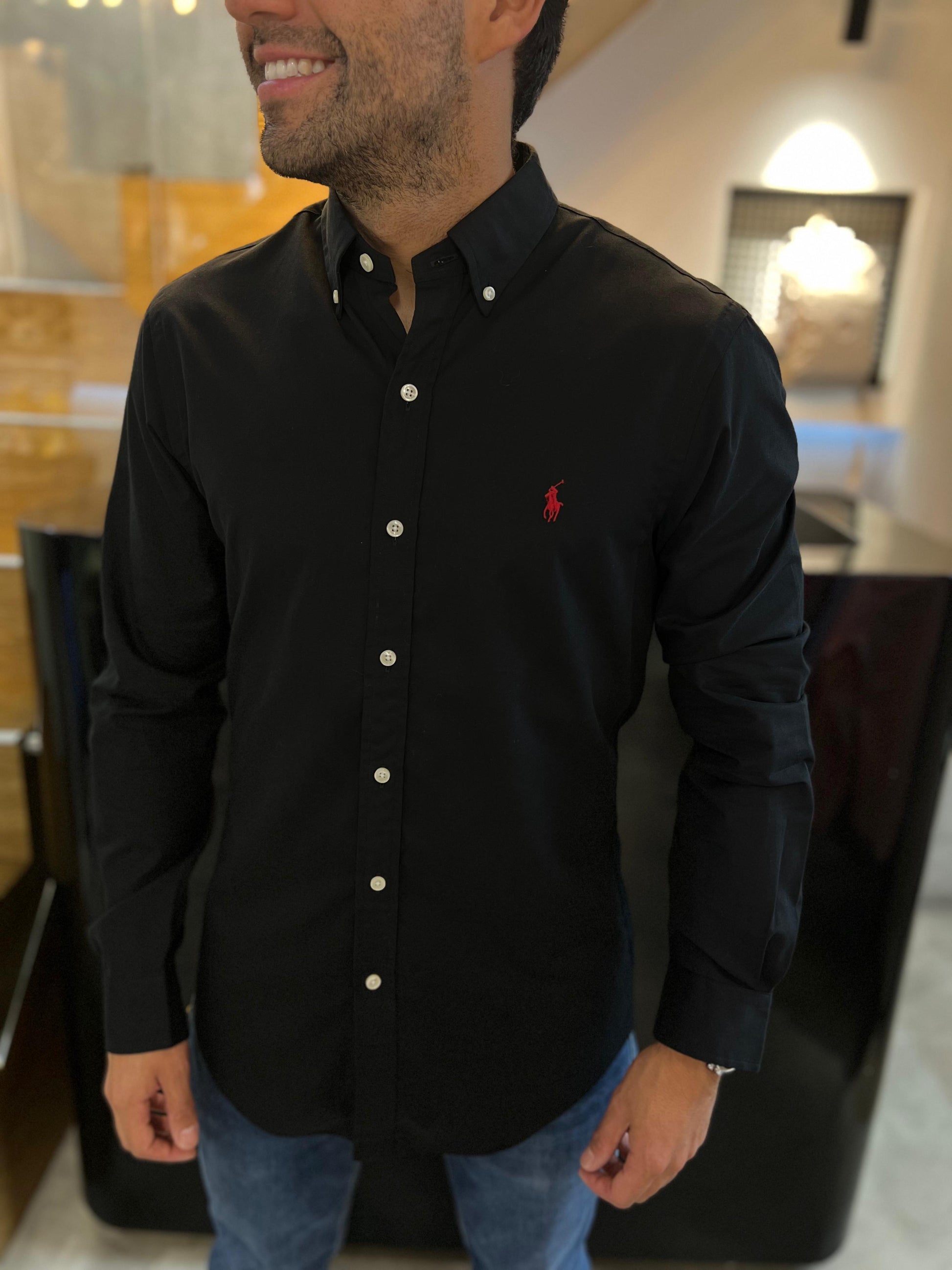 Camisa Polo R.L hombre Algodón Slim Fit Negra